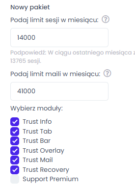 Aby dodać Trust Maila i/lub Trust Recovery do swojego pakietu postępuj według następujących kroków: