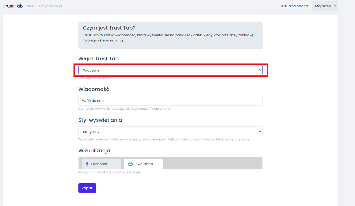 Na koniec kliknij Zapisz. Nie zapomnij opublikować ich w panelu Trustisto przyciskiem Publikuj.